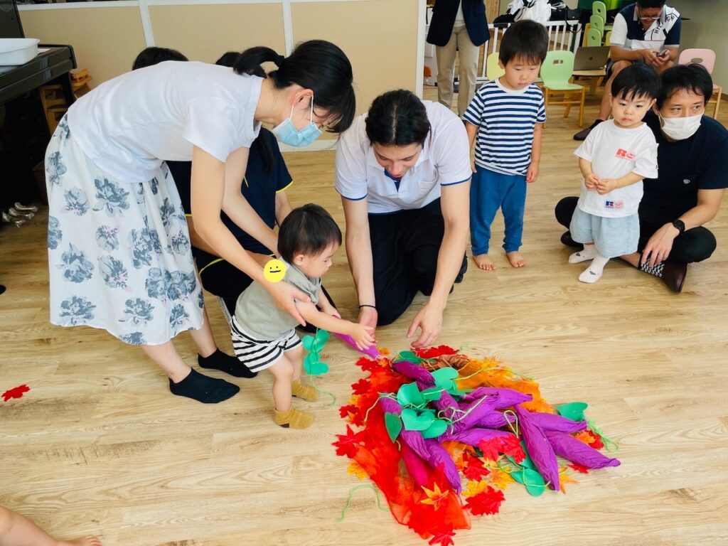 パラバルーンやタッチングゲームをしたり、さつまいもを掘って焼いて食べたり、盛り上がりすぎてちょっと時間をオーバーしてしまいましたが、子どもたちはとっても楽しそうに取り組んでくれていました!