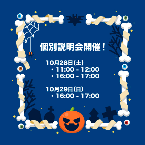 10月28日(土)、29日(日)に個別説明会を実施いたします(^ ^)