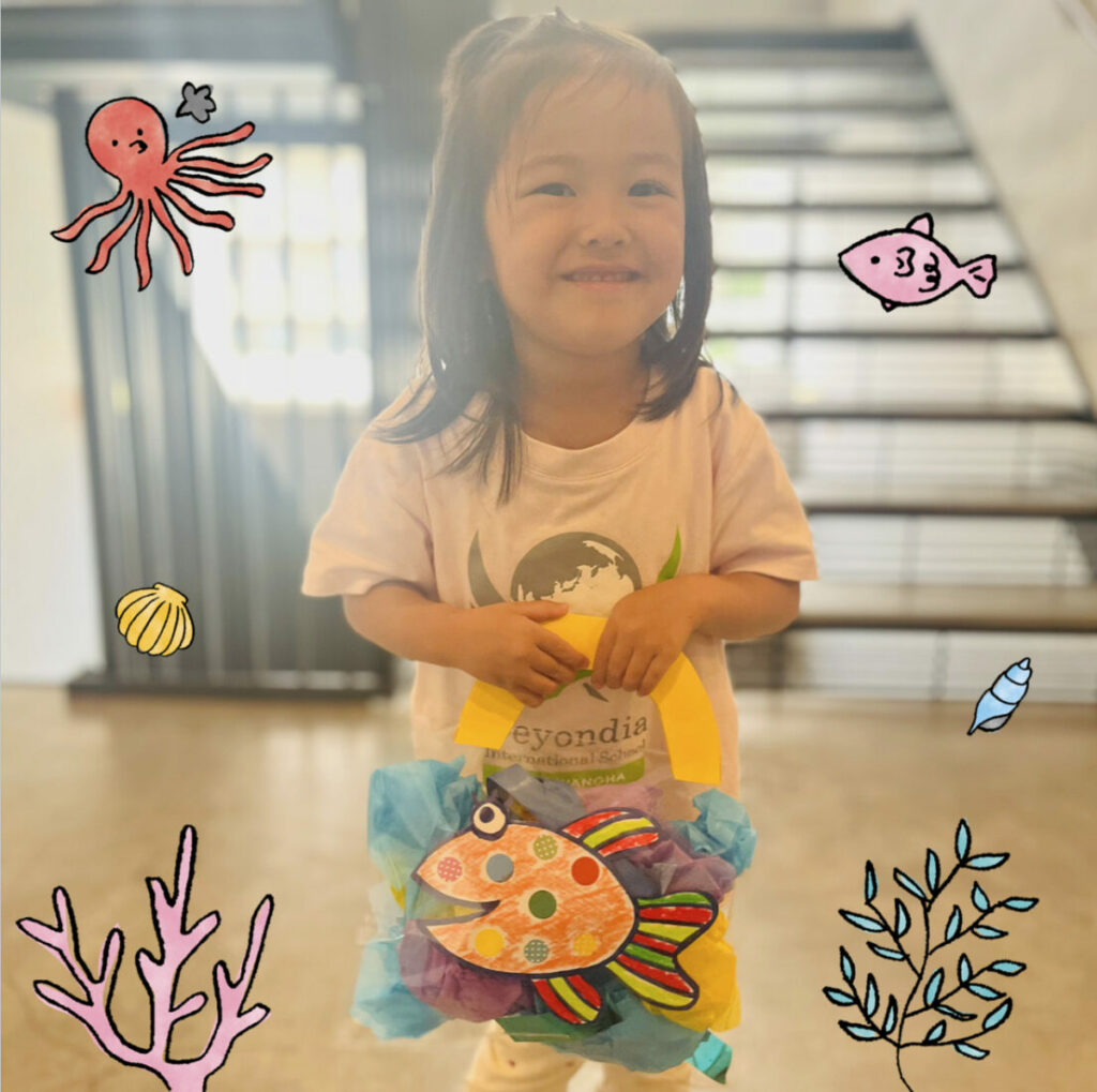 This time, the theme is “Let’s have fun in English! ~ Let’s make cute fish tank bags♪ ~” Besides crafts, we will sing songs and read a story book in English (^^)