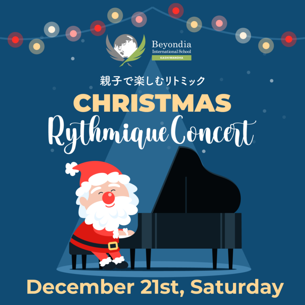 We are hosting a Rythmique Concert on Saturday, December 21. Join us for a special Christmas version of the rythmique activities we regularly hold at our school, and have fun with your child(^^) Rythmique concert will be conducted in Japanese. There will also be storytelling with English picture books. And who knows? Santa might make a surprise appearance! We’d love to see you there!