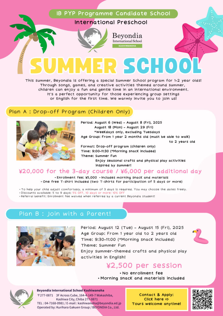 This summer, Beyondia International School Kashiwanoha is opening its doors to 1–2 year olds for a special Summer School experience.