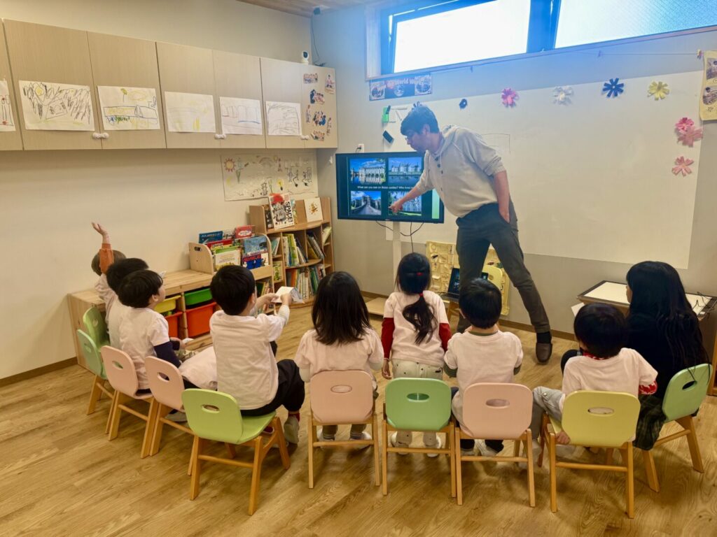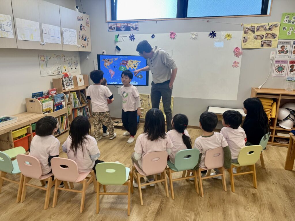 先月、保護者の方のご協力のもと、フランスのカントリースタディを行いました。今回はフランス出身の保護者の方が中心となり、子どもたちにとって本物で意味のある学びの時間となりました。子どもたちは質問をしたり、自分の考えを伝えたりしながら、体験を通してフランスについて楽しく学びました