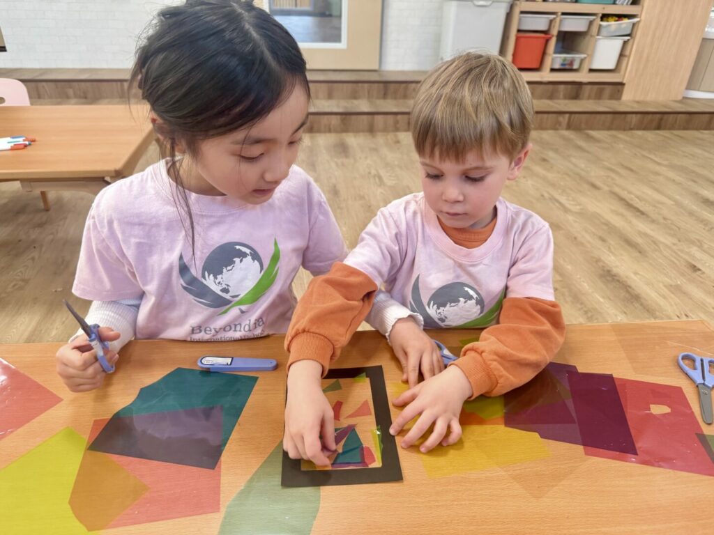 To conclude, the children created their own stained-glass artwork. This activity supported creativity, fine motor skills, and self-expression while deepening their understanding of French culture.