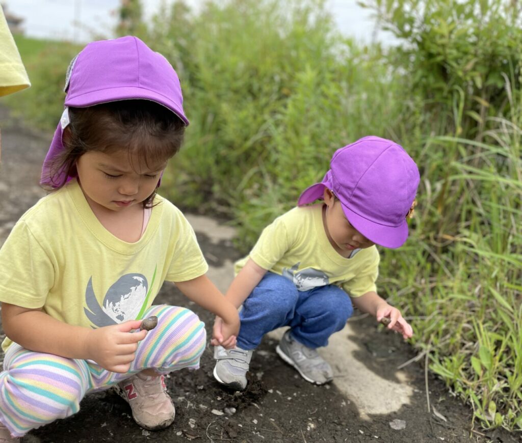 雨の日や暑い日が多く、お散歩に出られない日もありましたが、室内では体を動かすゲームやダンス、テーブル遊びを通して楽しい時間を過ごしました。晴れた日には外に出て、草花や虫など、自然の変化を観察しながら季節を感じました。