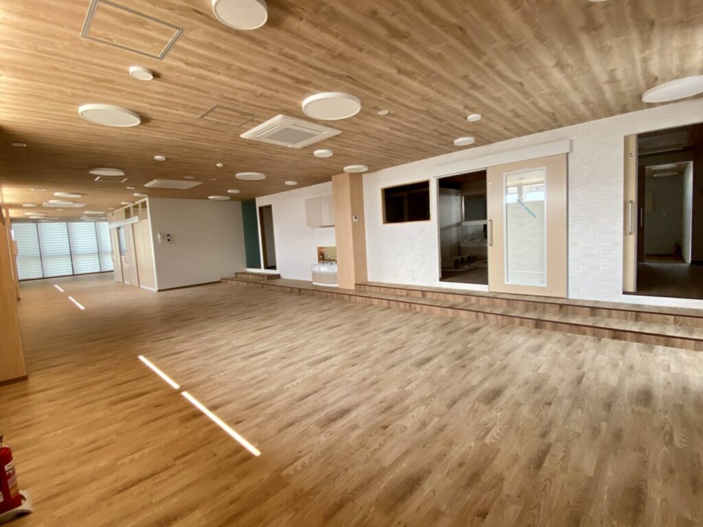 仕切りのない広い教室は、モダンなデザインで、