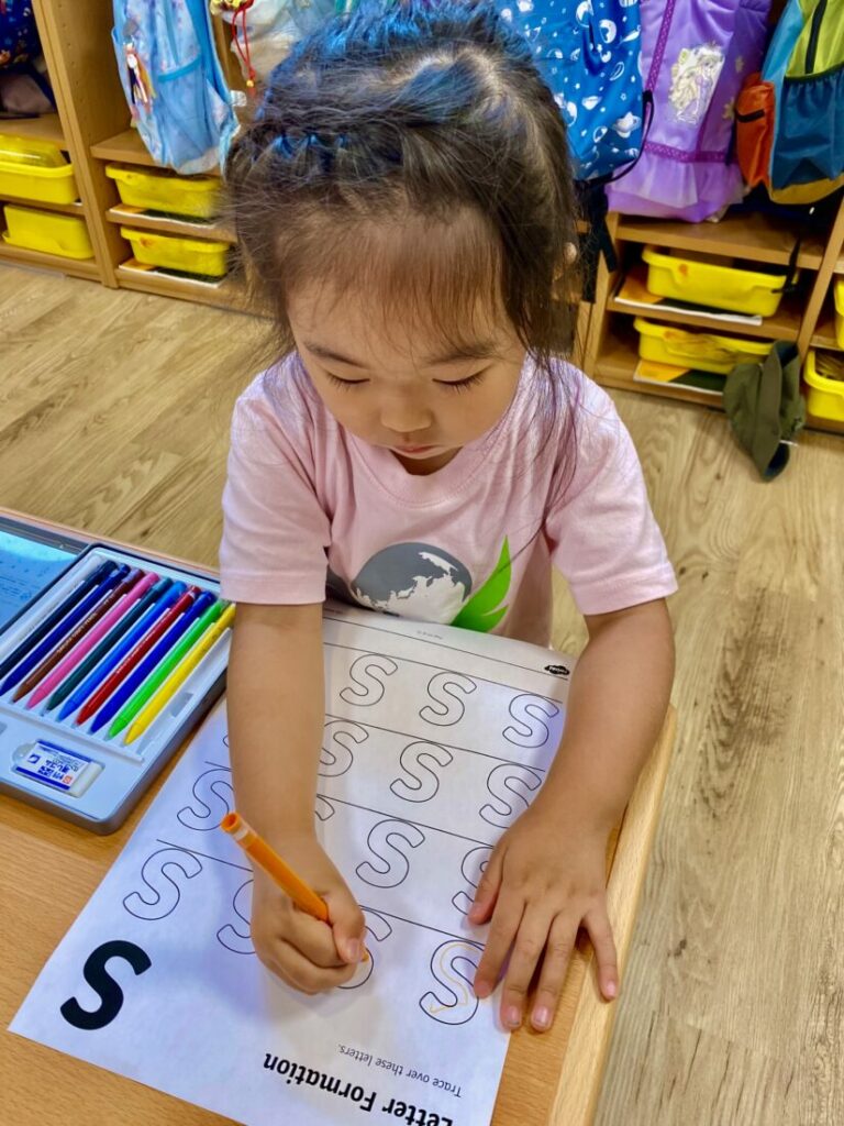 This week, our K1 class began their exciting journey into writing by learning how to form the letter ‘S’. As the first letter introduced in the Jolly Phonics program, ‘S’ is a great starting point for developing early literacy skills.