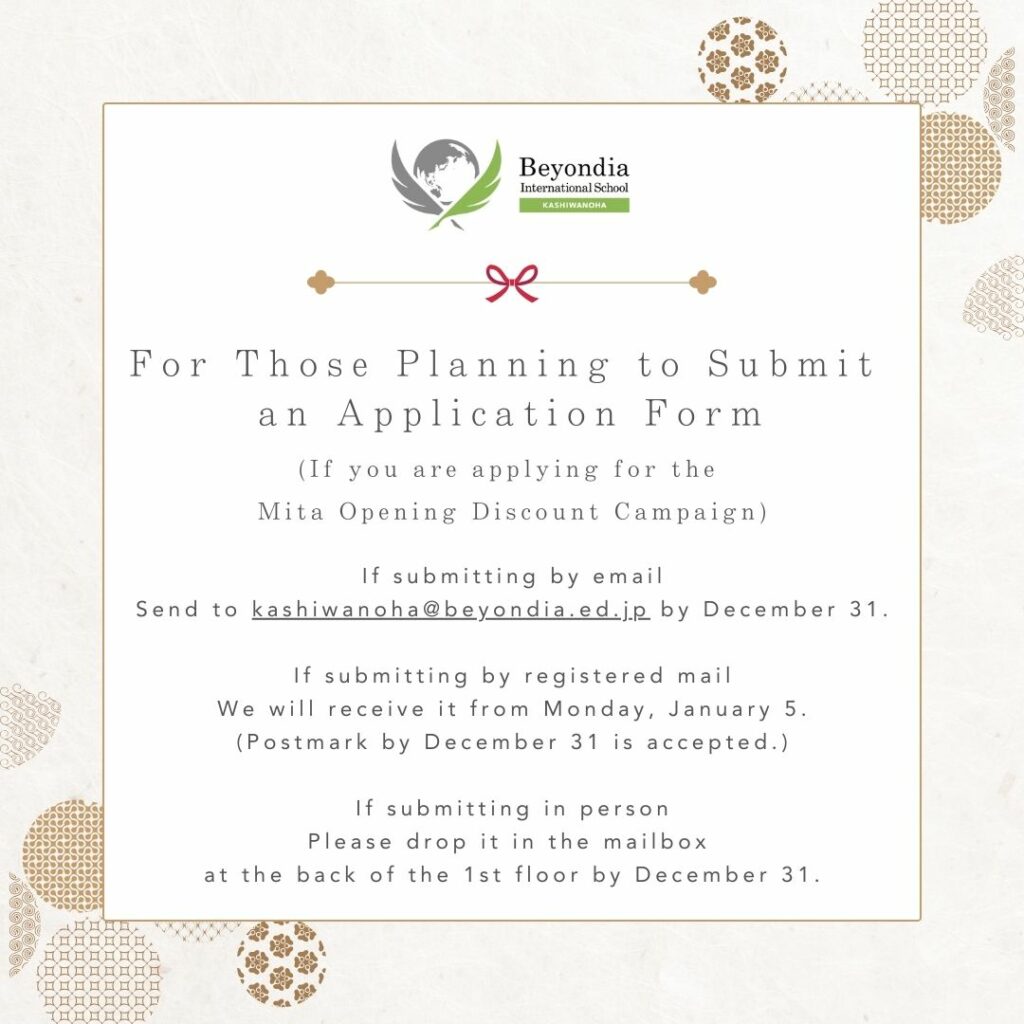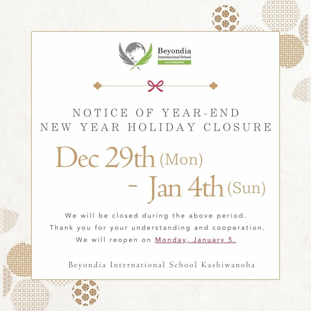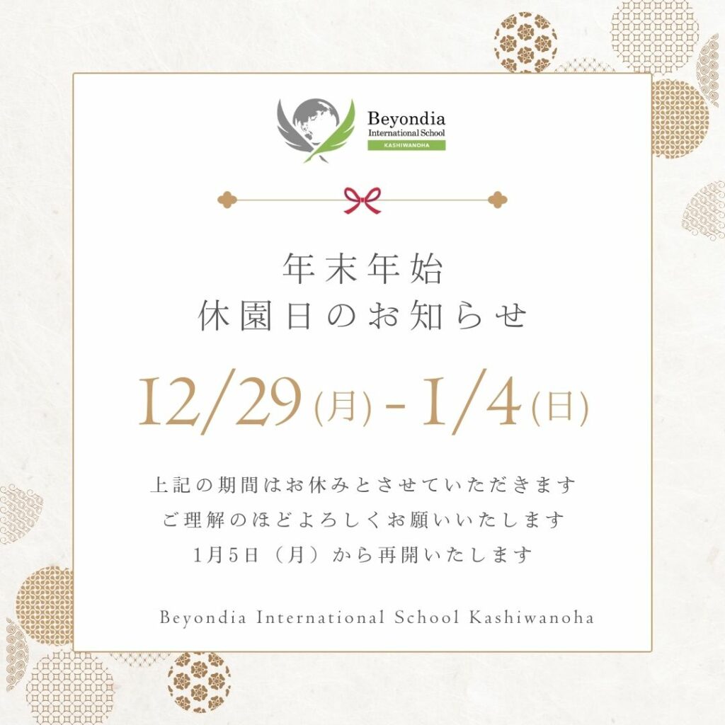 All of us at Beyondia International School Kashiwanoha look forward to welcoming everyone back in the new year and continuing to support each child’s growth and learning.