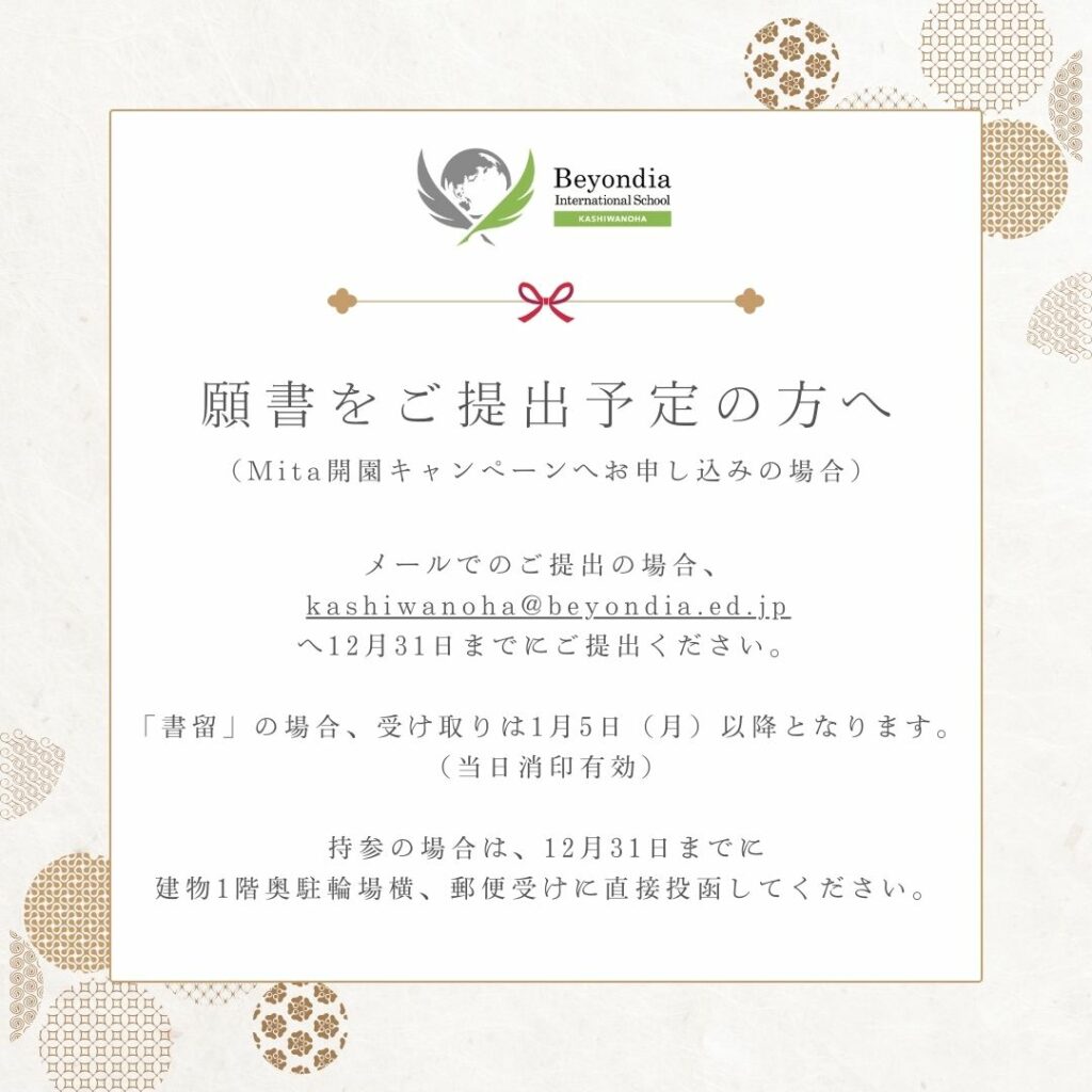 本年もBeyondia International School Kashiwanohaをご支援いただき、誠にありがとうございました。