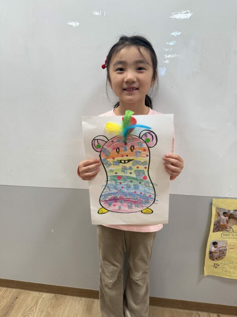 この活動は探究型学習を促進し、子どもたちはさまざまな生き物を比較し、それぞれの特徴のどこが面白いかを共有しました。また、モンスターのどこが怖いか、面白いか、特別かを説明することで、言語スキルも育まれました。