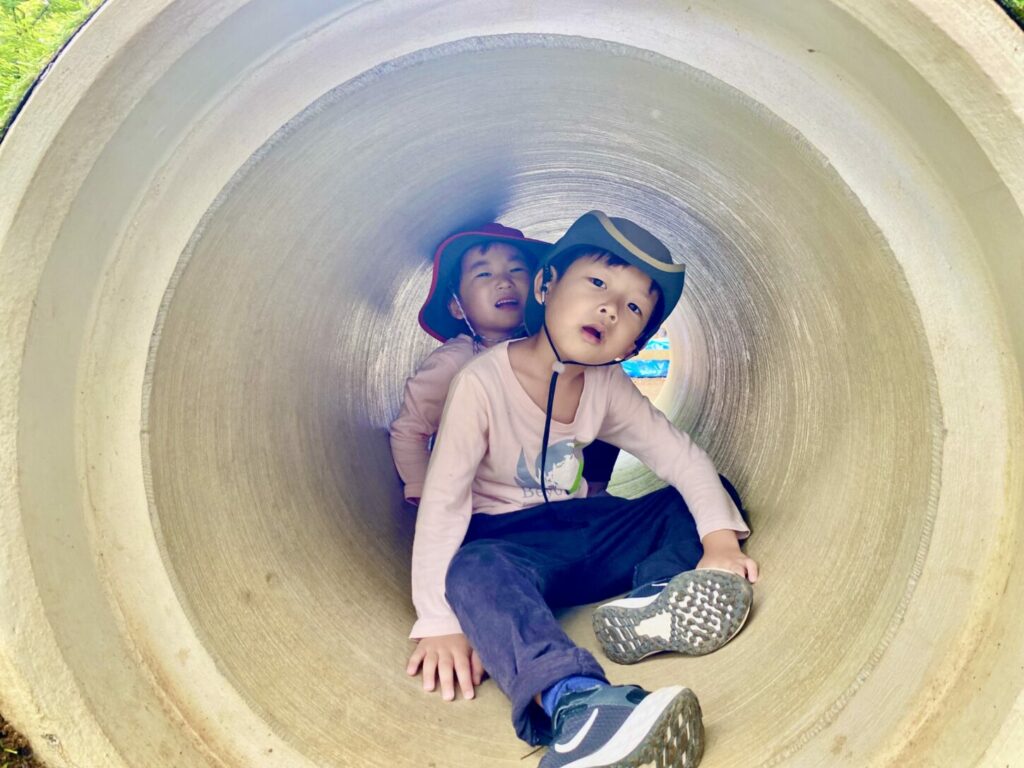 Our first stop was a big jungle gym play area. The children had so much fun climbing, sliding, and exploring the tunnel. They played many pretend games and were very kind and friendly to their classmates and also to other children in the park.