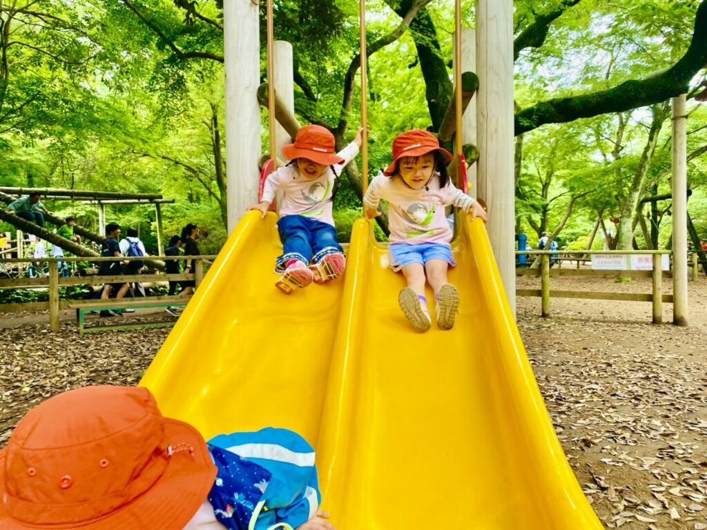 Today, our K2 and K3 students went on an exciting field trip to Shimizu-Koen. Everyone was very happy and full of energy as we took two trains to get to the park.