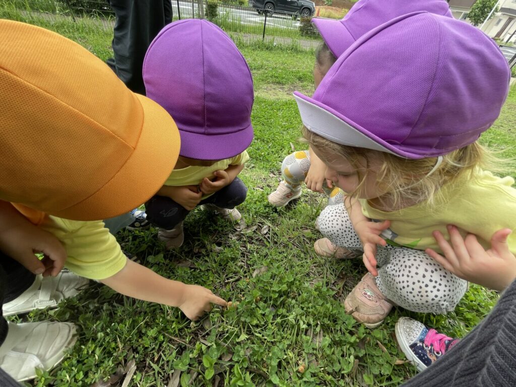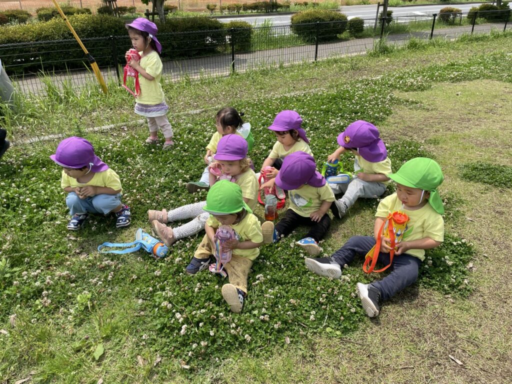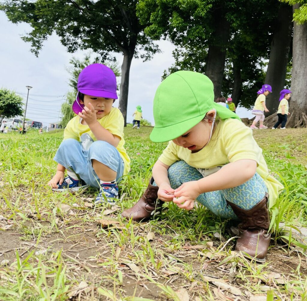 雨の日や暑い日が多く、お散歩に出られない日もありましたが、室内では体を動かすゲームやダンス、テーブル遊びを通して楽しい時間を過ごしました。晴れた日には外に出て、草花や虫など、自然の変化を観察しながら季節を感じました。
