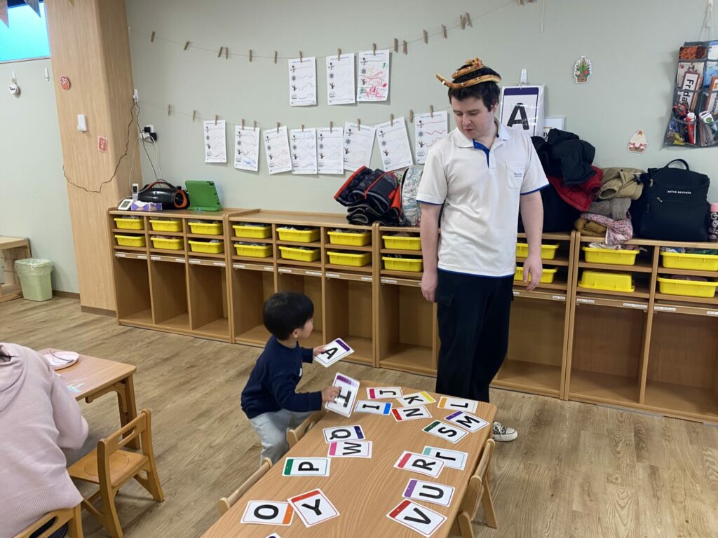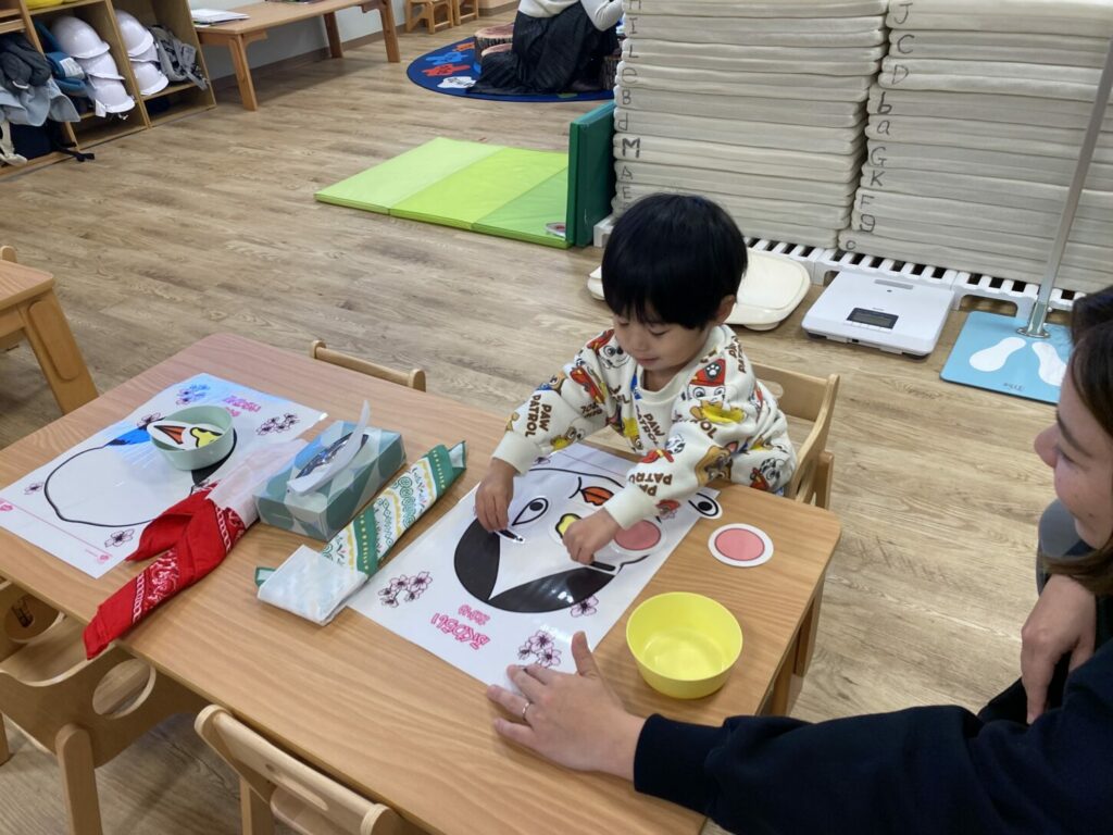 Today was our monthly Beyondia Lounge. We welcomed twelve kids and their families to our school to have some fun and make new friends. When the families arrived, they were able to choose from a ton of different activities and games to do. Some of the children went straight to the toys while others really enjoyed running around the P.E. area. There were also some New Years activities to do. We had a snake craft for the kids to do to celebrate the Chinese Zodiac for 2025 as well as a game of fukuwarai for the kids to enjoy.