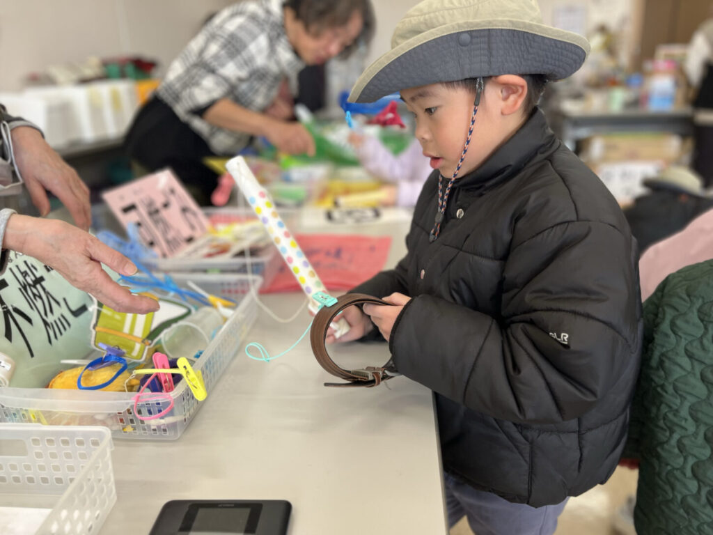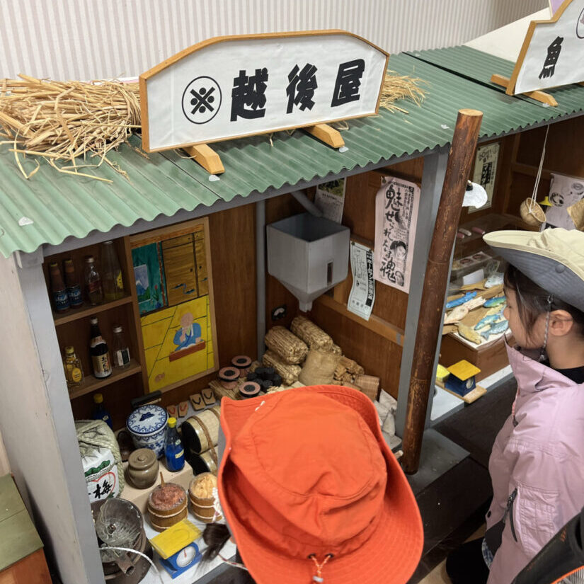 見学の最後には、昔のお店で商品がどのように保管・包装されていたかを見学しました。子どもたちは、昔と現在の材料の違いを比べながら、時代の変化について考える姿が見られました。また、リサイクル素材から作られた商品が並ぶショップも訪れ、スクールに持ち帰って遊びや学びに活かせるお土産を選び、実際に購入しました。(和風のお皿やトレー、プラスチックのサラダボール、ひらがな積み木など)