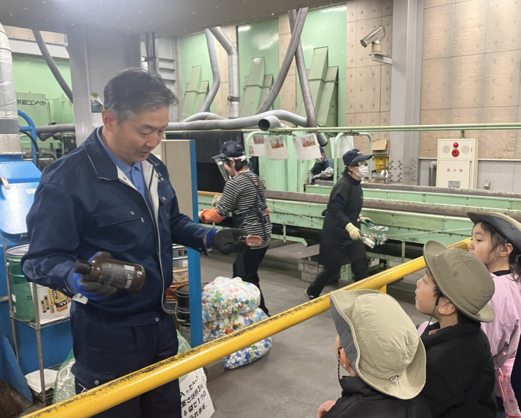 到着すると、スタッフの方が温かく迎えてくださり、見学ツアーが始まりました。子どもたちは、回収されたゴミがどのように分別され、処理されているのかを実際に見ることができました。また、大きな機械だけでなく、スタッフの方々が一つひとつの物を再利用できるよう丁寧に準備している様子にも、とても驚いていました。この体験を通して、子どもたちは資源をリサイクルすることや、環境を守るために人々が協力していることへの理解を深めることができました。