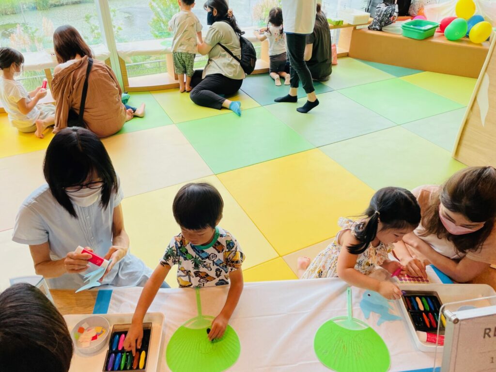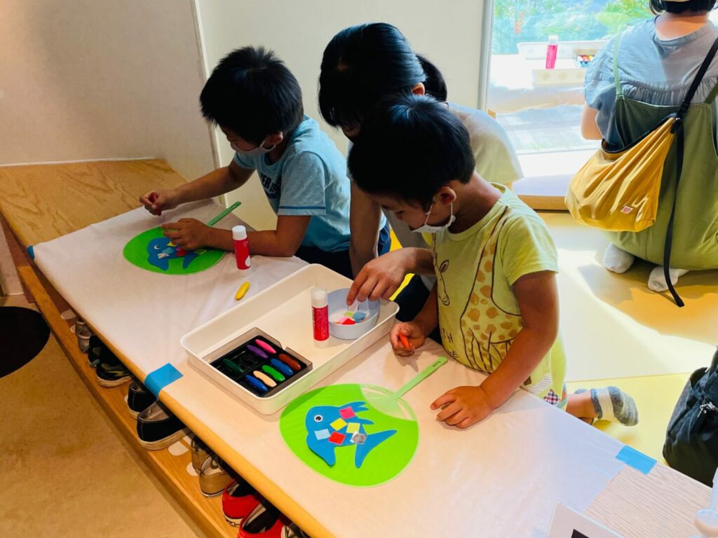 折り紙やステッカーを上手に使い、素敵なうちわを完成させてくれました♪