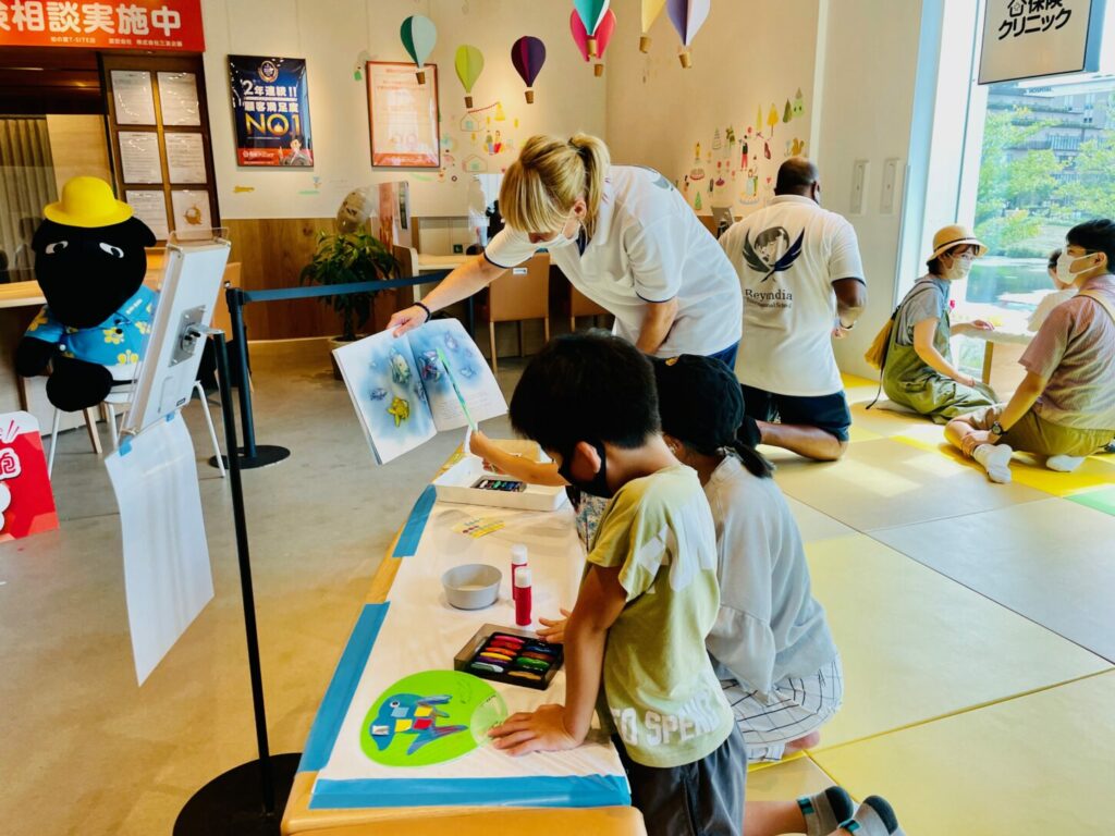 「The Rainbow Fish」の読み聞かせでは、キラキラした魚のウロコに釘付けの子どもたち!