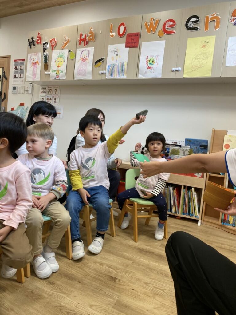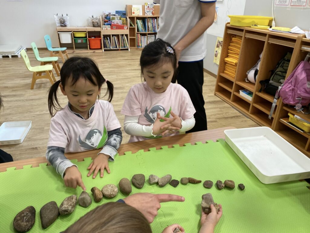 本日、K2/K3クラスはオープンスクールを開催し、とても楽しく刺激的な時間を過ごしました!子どもたちは岩を使って遊びながら学びました。最近、子どもたちは岩にとても興味を持っており、公園に行くたびに岩を集めるのが大好きです。今日はこの好奇心をテーマ「私たちはどのように自分を表現するか」に結びつけました。