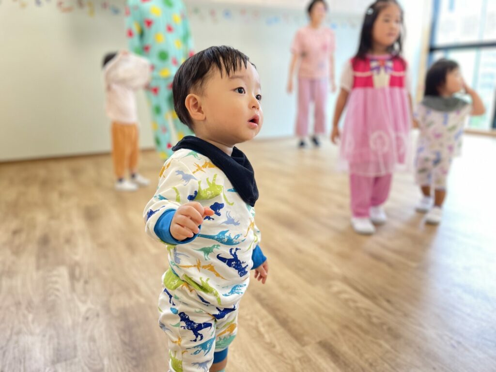Pajamaですっかりリラックスしてのんびりモードと思いきや、大好きなスーパーヒーローやキャラクター、お姫様のようなヒラヒラドレス、アイマスクやブランケット、子どもたちはPajamaでもいつも通り元気で、お友だちと遊んだり大きな声でレッスンに参加したりしていました。