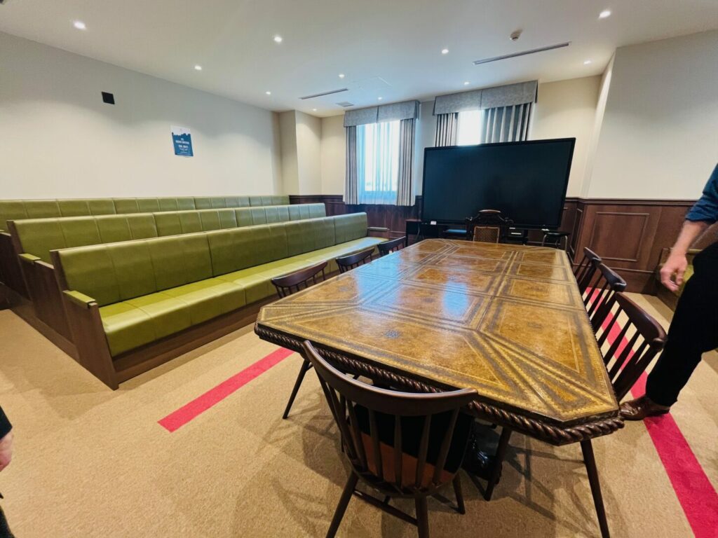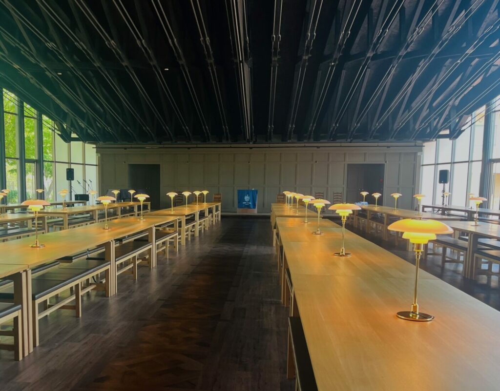 同校の施設は本当に見応えがありました。個人でもグループでも使用できる音楽室、さま ざまなスポーツに対応した広い体育館、トレーニング機器のそろったジムなど、生徒たち の活動を幅広く支える設備が充実しています。中でも特に印象的だったのは、ロンドンの 英国下院を模したディベートルーム、落ち着いて学習や読書ができる図書館、そしてまる で映画の世界に入り込んだかのようなホグワーツ風の食堂です。学校全体に「学ぶ楽し さ」と「日常の特別さ」を感じさせる工夫が散りばめられていました。