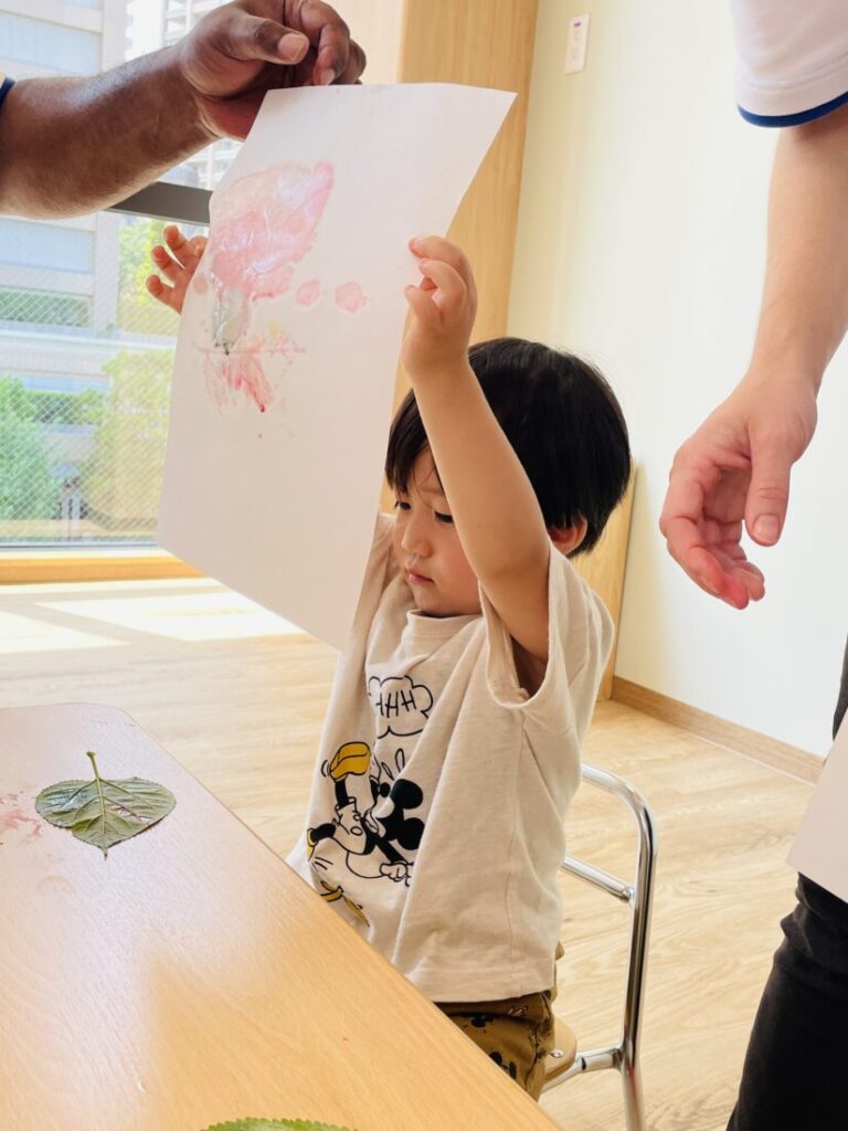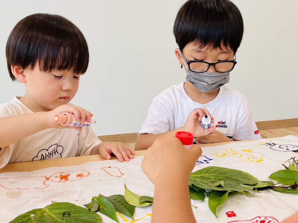 まずは葉っぱでコラージュ♪です。