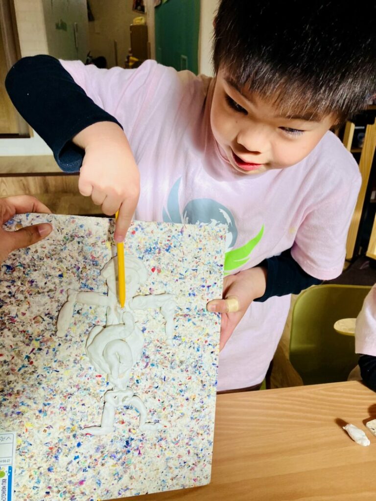 最後に、粘土を使って人間の体を作りました。子どもたちはとても創造的で知識も豊富で、中には心臓、胃、小腸、大腸などの内臓まで表現した子もいました。
